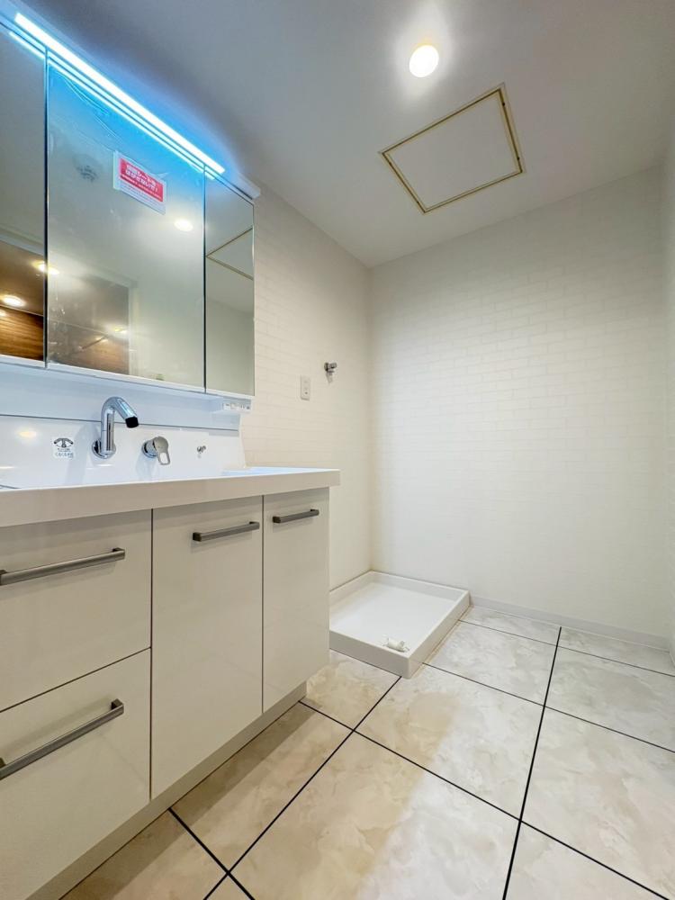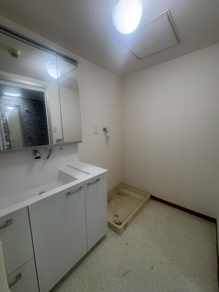 <洗面所>洗面化粧台、洗濯パン新調。CF、壁紙張替。