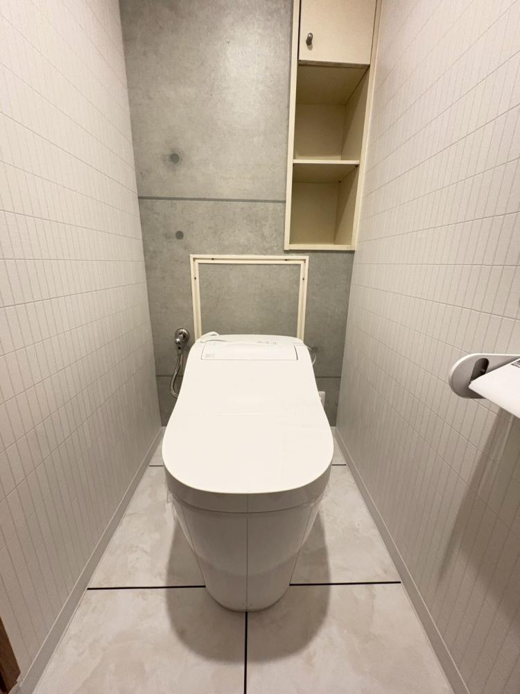 <トイレ>タンクレストイレに新調、壁紙、CF張替。