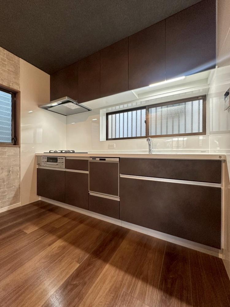 外壁をグレーから青空に映えるさわやかな白に塗り替え、お部屋はダークブラウンを基調とした色合いに統一し、落ち着いた印象になりました。また、浴室暖房乾燥機や食器洗い乾燥機、温水洗浄便座など基本的な機能も装備され、快適な住空間になっております。