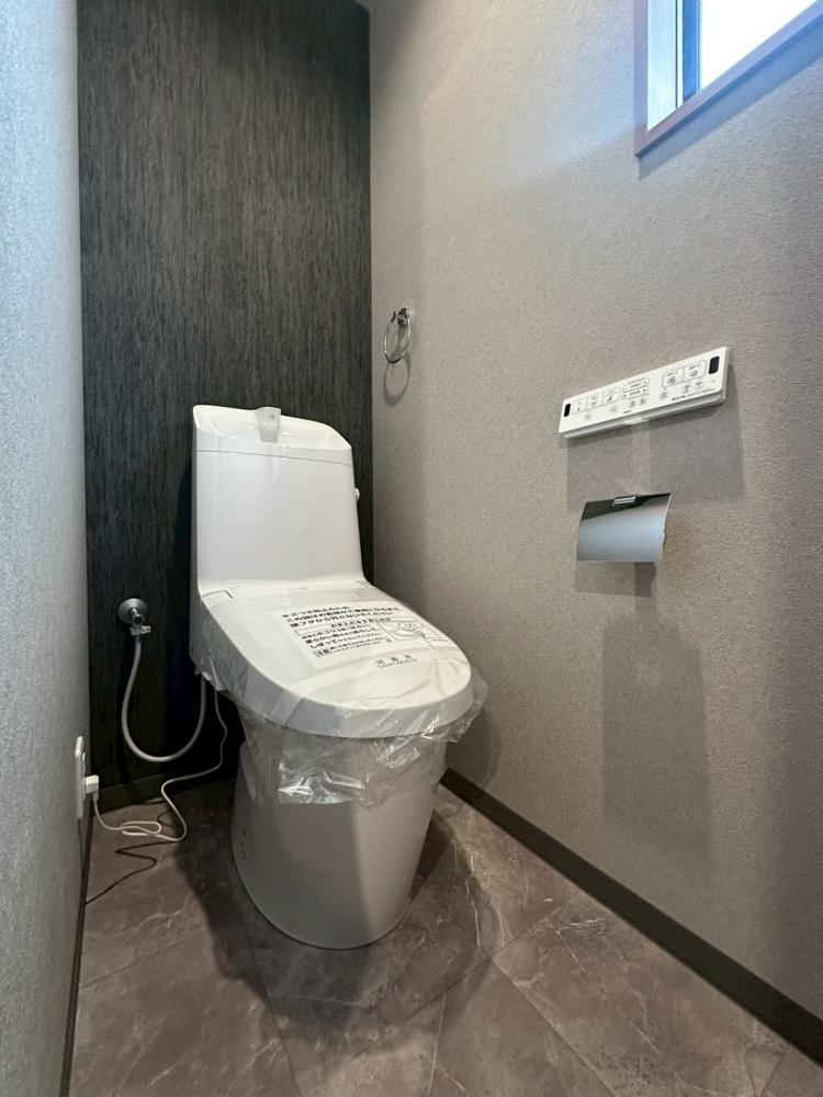 <トイレ>新調。壁紙もシックで落ち着いた色合いに変更