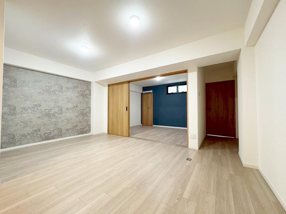 <リビング>床材、壁紙張替。リビングに隣接した和室を洋室に変更。