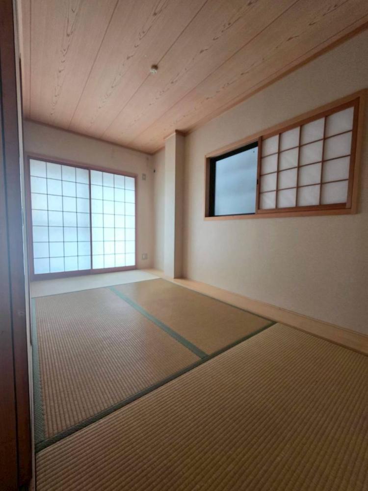 壁紙やフロアタイルを明るめの色に張替え、アクセントクロスを使用したおしゃれな印象のお部屋に変わりました。一階の和室に琉球畳を採用。和室の落ち着いた雰囲気も残しつつ、洋風のインテリアにも合わせやすい空間になっております。その他、食器洗い乾燥機付きシステムキッチンに新調、浴室乾燥機付きのユニットバスに新調など、水回りも新しくなり、気持ちよくご使用いただけます。