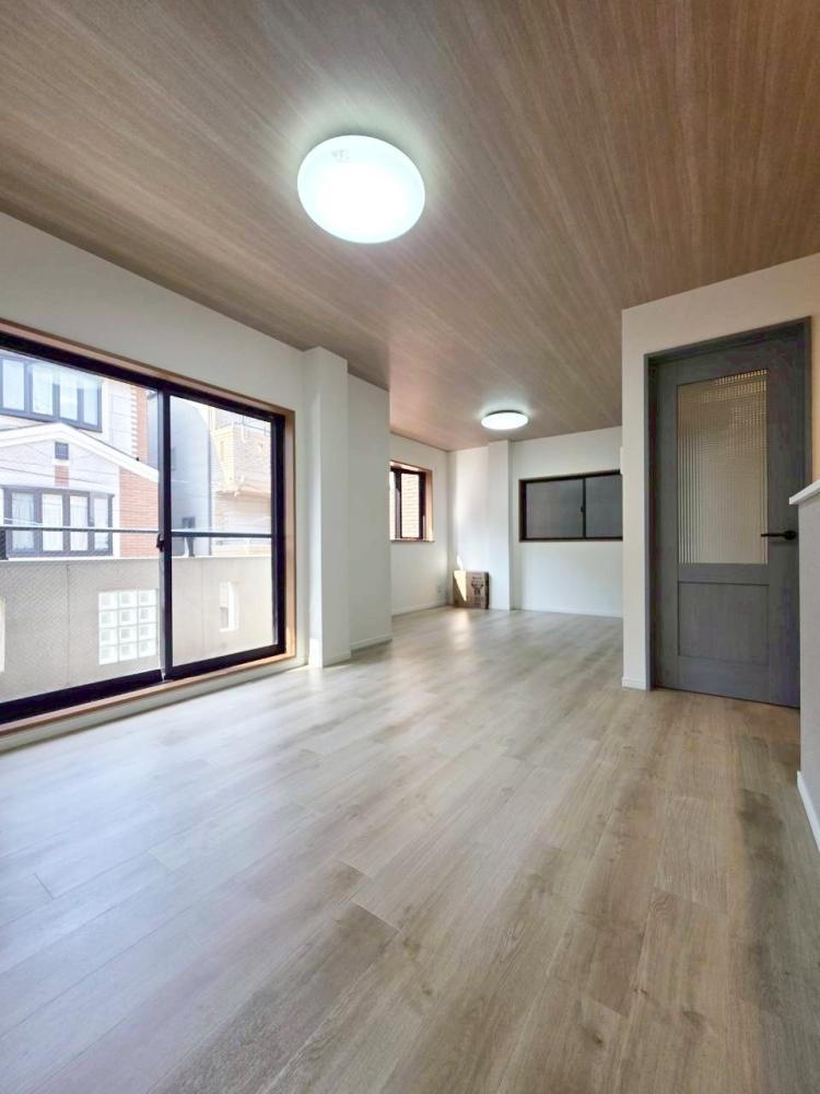 <リビング>床材、壁紙張替。