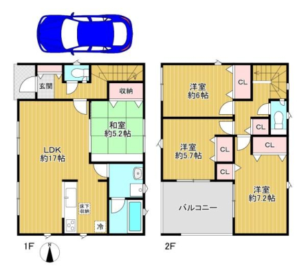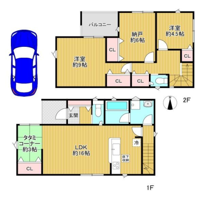 2SLDK・タタミコーナー付!南からの採光有! 駐車スペース有(車種制限有) 全居室収納・床下収納・納戸有!