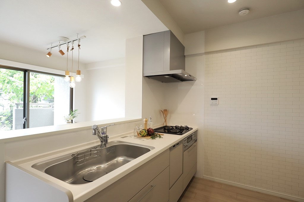 【システムキッチン】食洗機付きでお料理後の後片付けもスムーズです。
