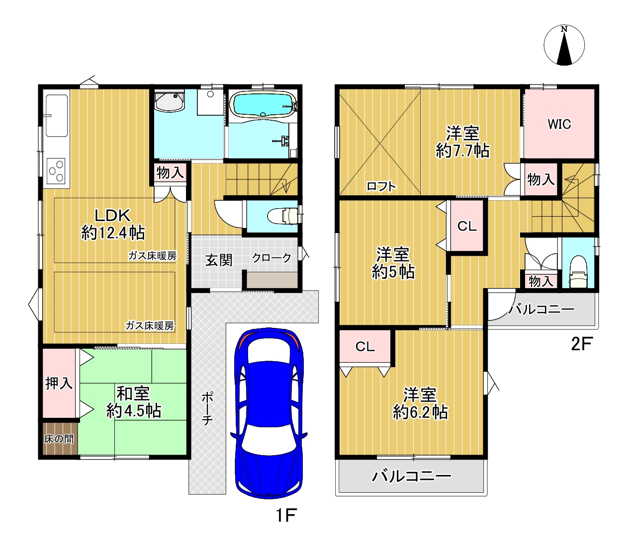 【間取り】ガス床暖房・ガスカワック付き!4LDK