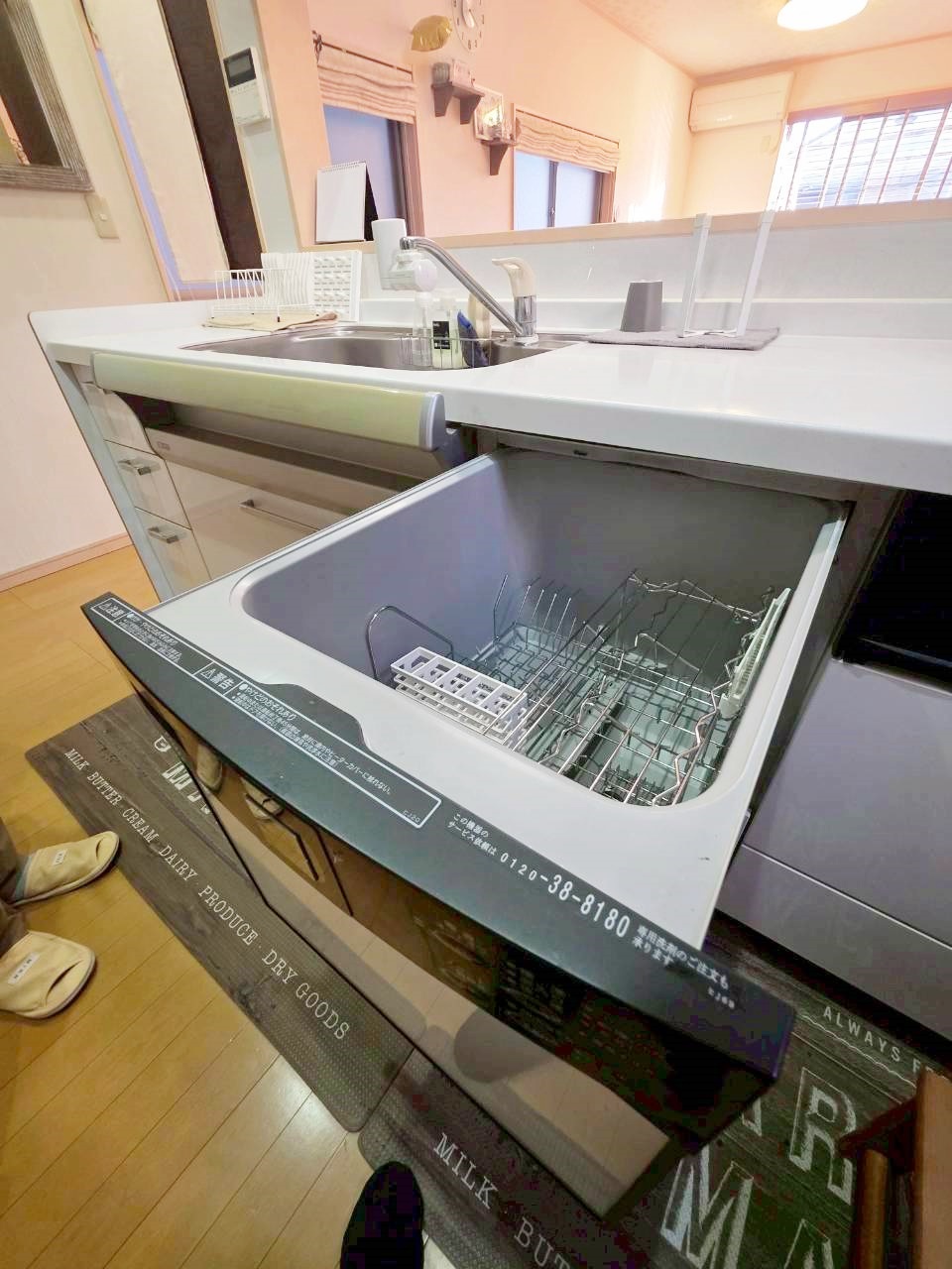 【システムキッチン】食洗機付きでお料理後の後片付けもスムーズです。