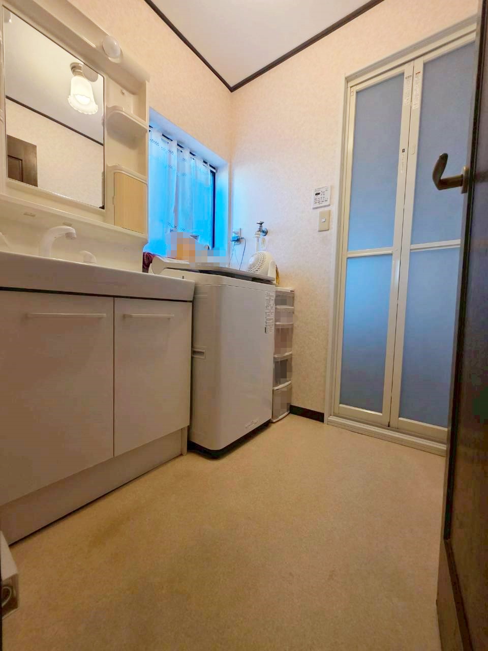 【洗面台・洗面所】洗面室はゆとりある広さで洗面台と洗濯機置き場があります。