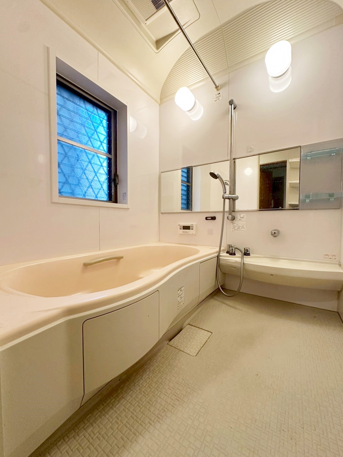 【浴室】足を伸ばしてゆったりくつろげる広さのあるバスルーム。小窓付きで自然換気も可能です。
