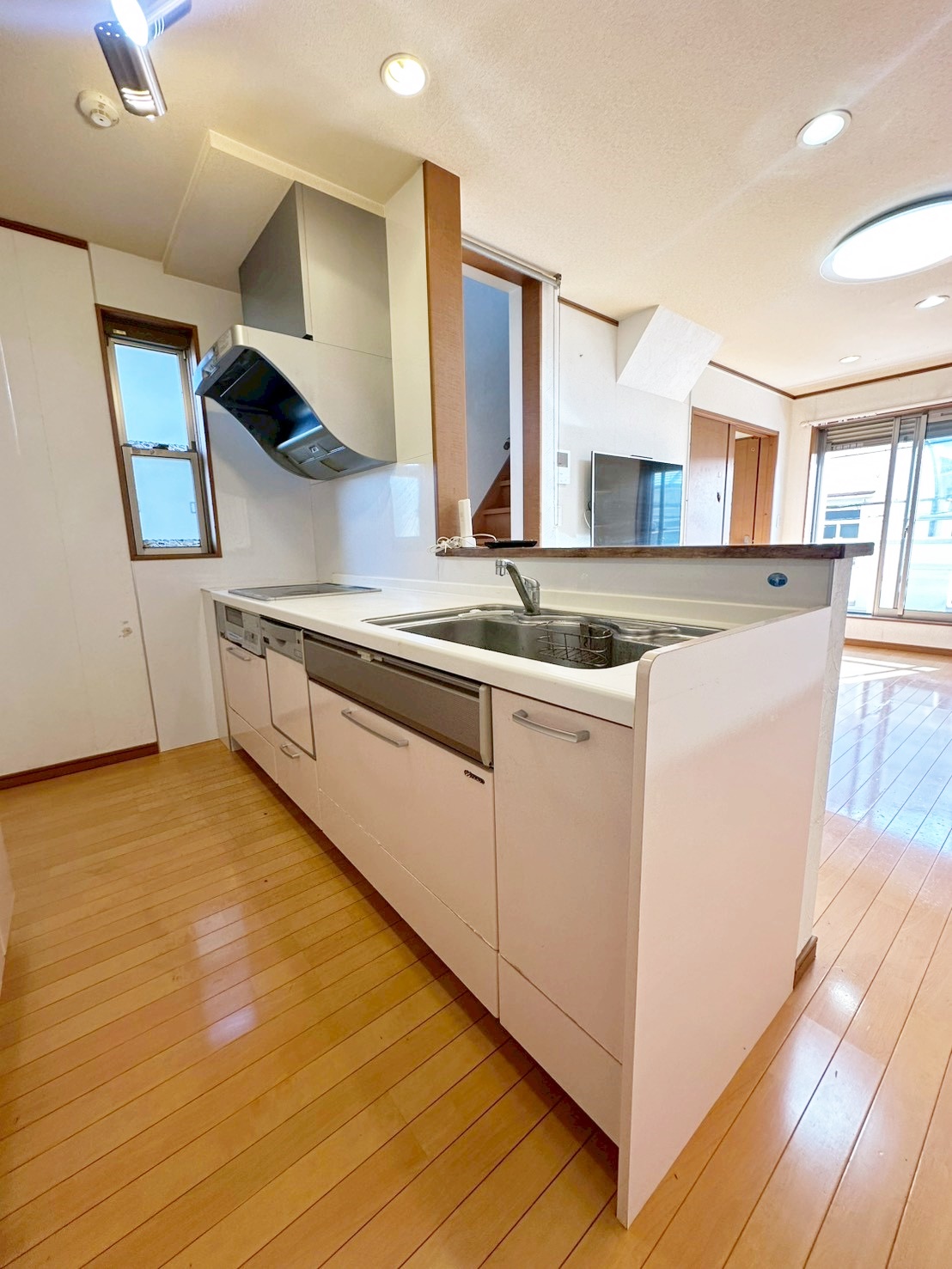 【キッチン】家事をしながらリビングの様子も確認できるので育児中の方も安心。