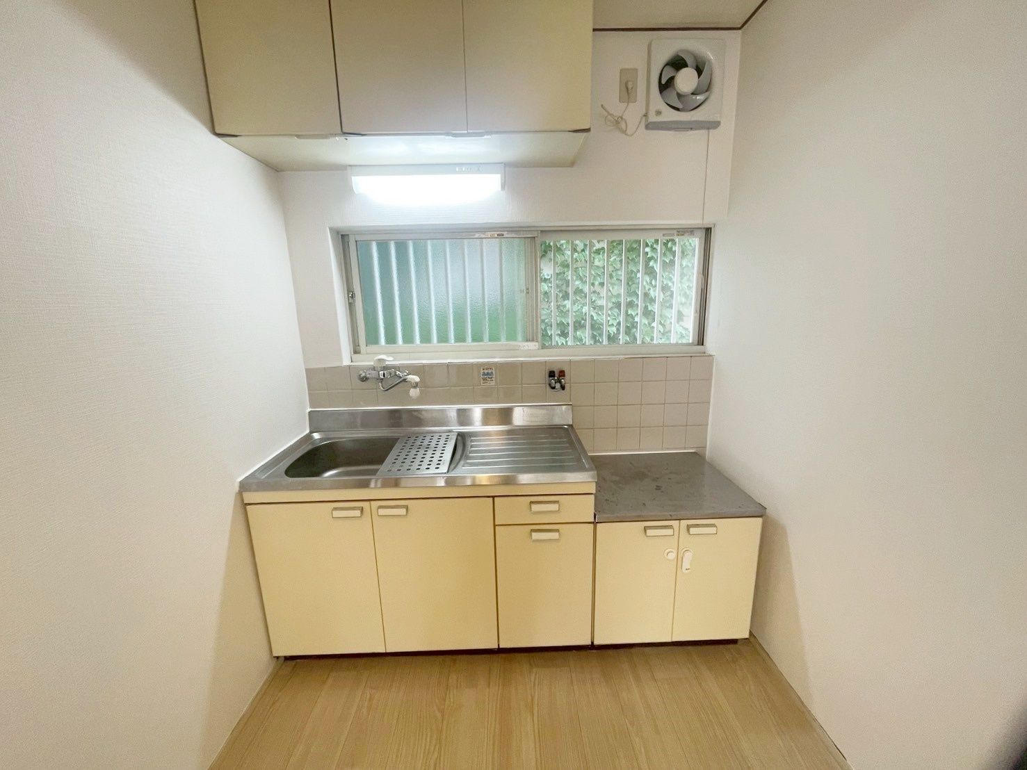 【キッチン】目の前に大きな窓有、自然換気しながら利用できます。
