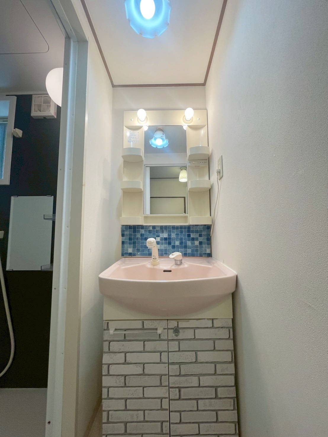 【洗面台・洗面所】明るく清潔感のある洗面化粧台。下部に収納スペース付き