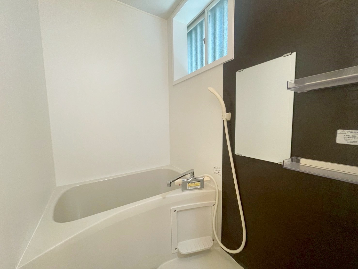 【浴室】落ち着いた色合いのバスルーム!窓があるのでカビ対策に換気もできます。
