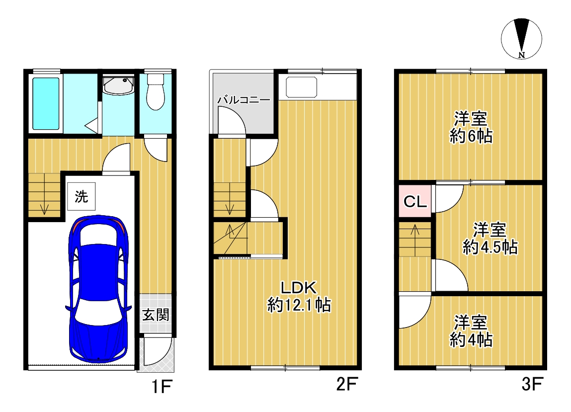 【間取り】シャッタ付きガレージありの3LDK