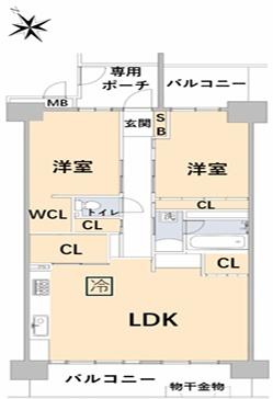 ・二面バルコニーにつき陽当り・通風良好!