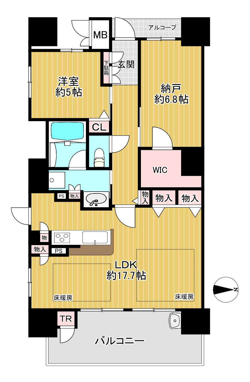 【間取り】広々ルーフバルコニー付きの1LDK